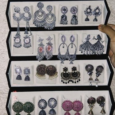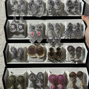 Dive into a treasure trove of sparkle with this fabulous set of 16 earrings! From delicate studs to statement jhumkas, there's a perfect pair for every mood and occasion. Each design brings its own personality to your jewelry collection, whether you're going minimalist chic or full glam. The bonus? They arrive in a gorgeous folding jhumka box that's as Instagram-worthy as the earrings themselves—perfect for gifting or keeping your collection beautifully organized. Mix, match, and slay!