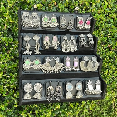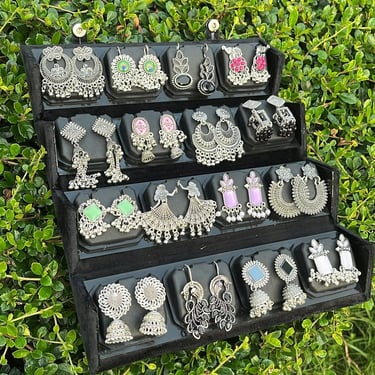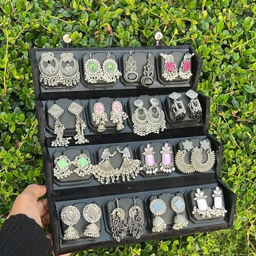 Dive into a treasure trove of sparkle with this fabulous set of 16 earrings! From delicate studs to statement jhumkas, there's a perfect pair for every mood and occasion. Each design brings its own personality to your jewelry collection, whether you're going minimalist chic or full glam. The bonus? They arrive in a gorgeous folding jhumka box that's as Instagram-worthy as the earrings themselves—perfect for gifting or keeping your collection beautifully organized. Mix, match, and slay!